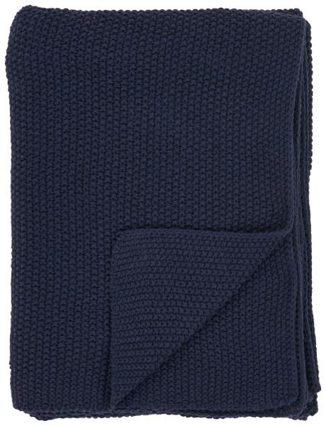 Sötétkék színű újrahasznosított pamut takaró 130x170 cm. Kellemes és puha takaró, válassz hozzá illő díszpárnát is!